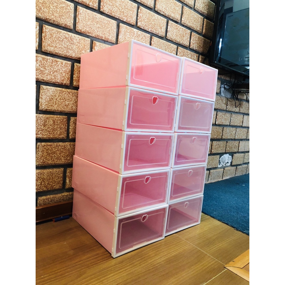 Giới thiệu Combo 10 hộp đựng giày nắp nhựa cứng trong suốt, Kệ tủ sắp xếp giày dép chịu lực 6kg size to