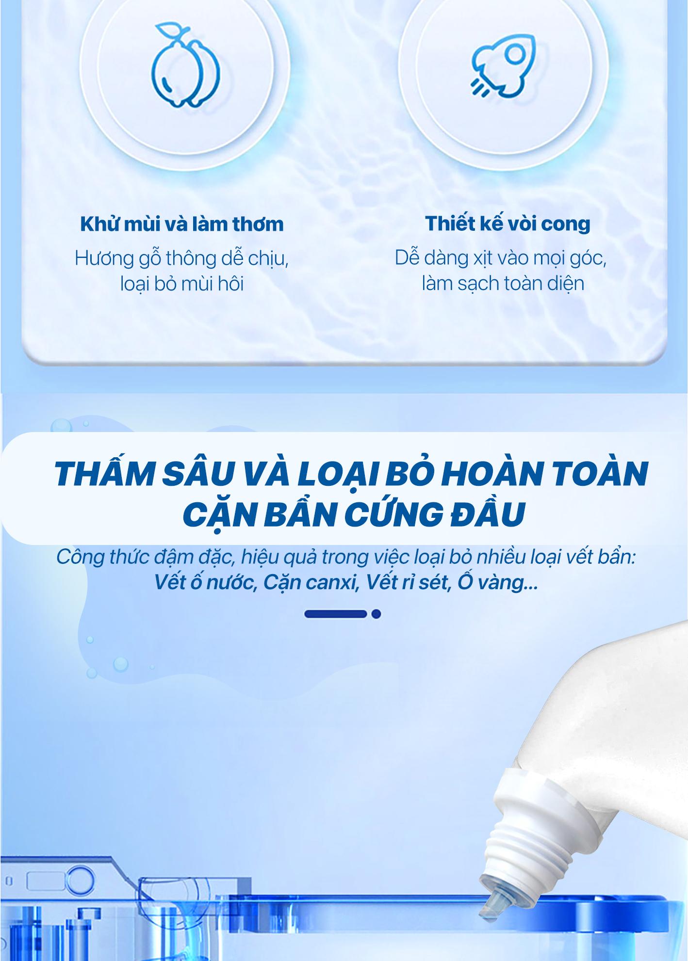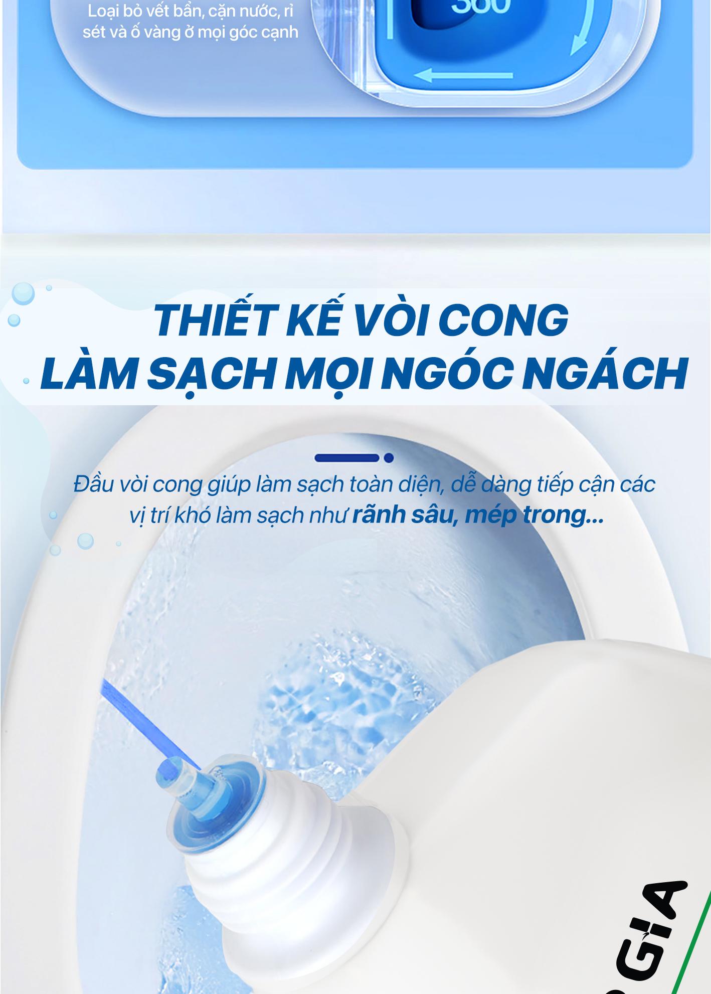 Thiết kế vòi cong: Dễ dàng xịt vào mọi góc, làm sạch toàn diện