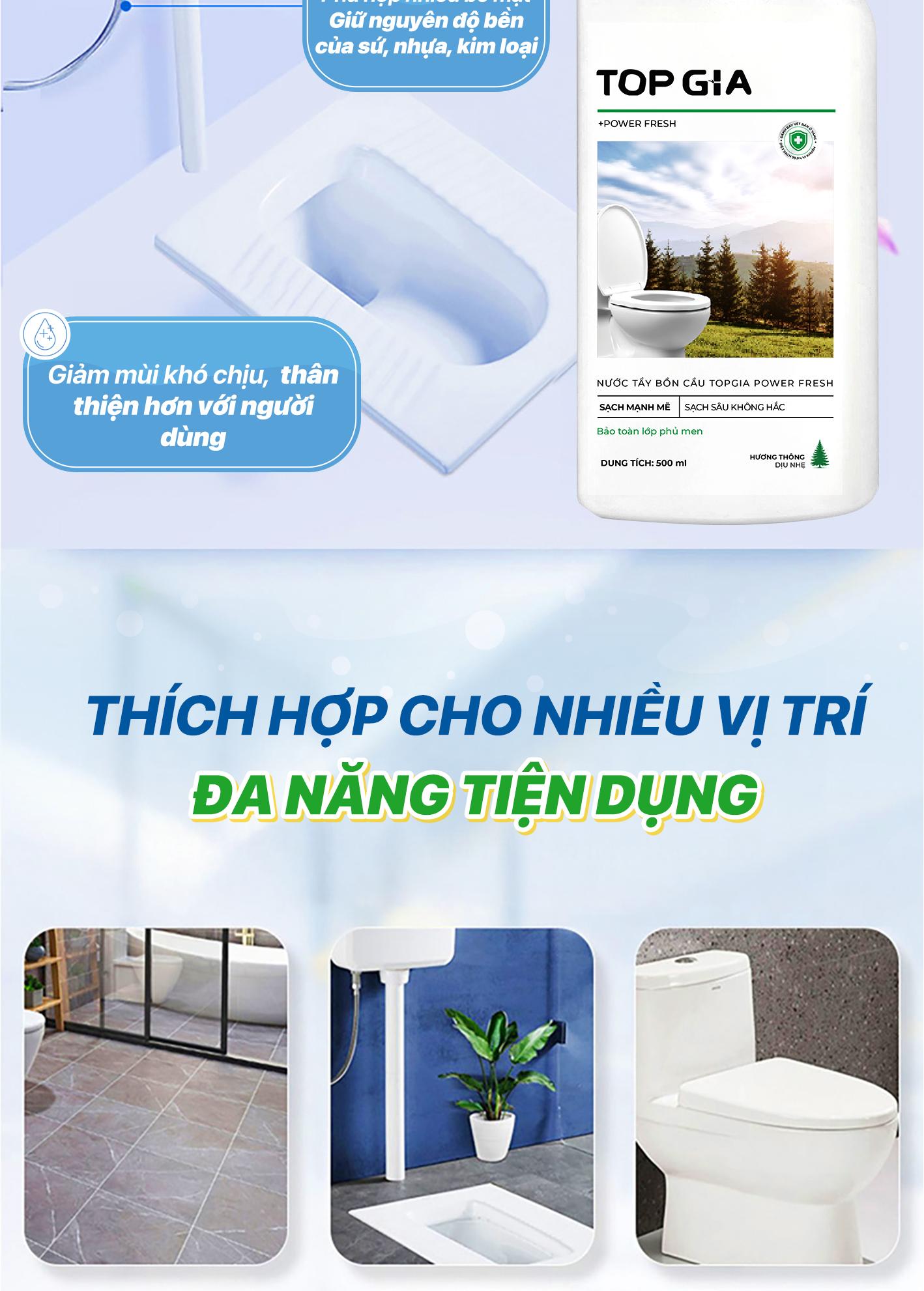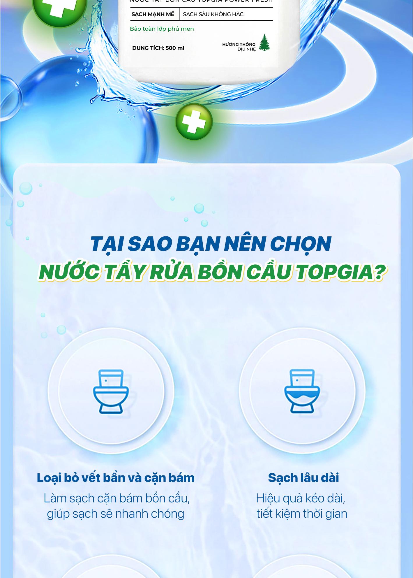 Tại sao bạn nên chọn nước tẩy rửa bồn cầu TOPGIA? Combo 4 chai tẩy bồn cầu TopGia 500ml siêu tiết kiệm, kháng khuẩn, khử mùi hôi, tẩy sạch vết bẩn Loại ...