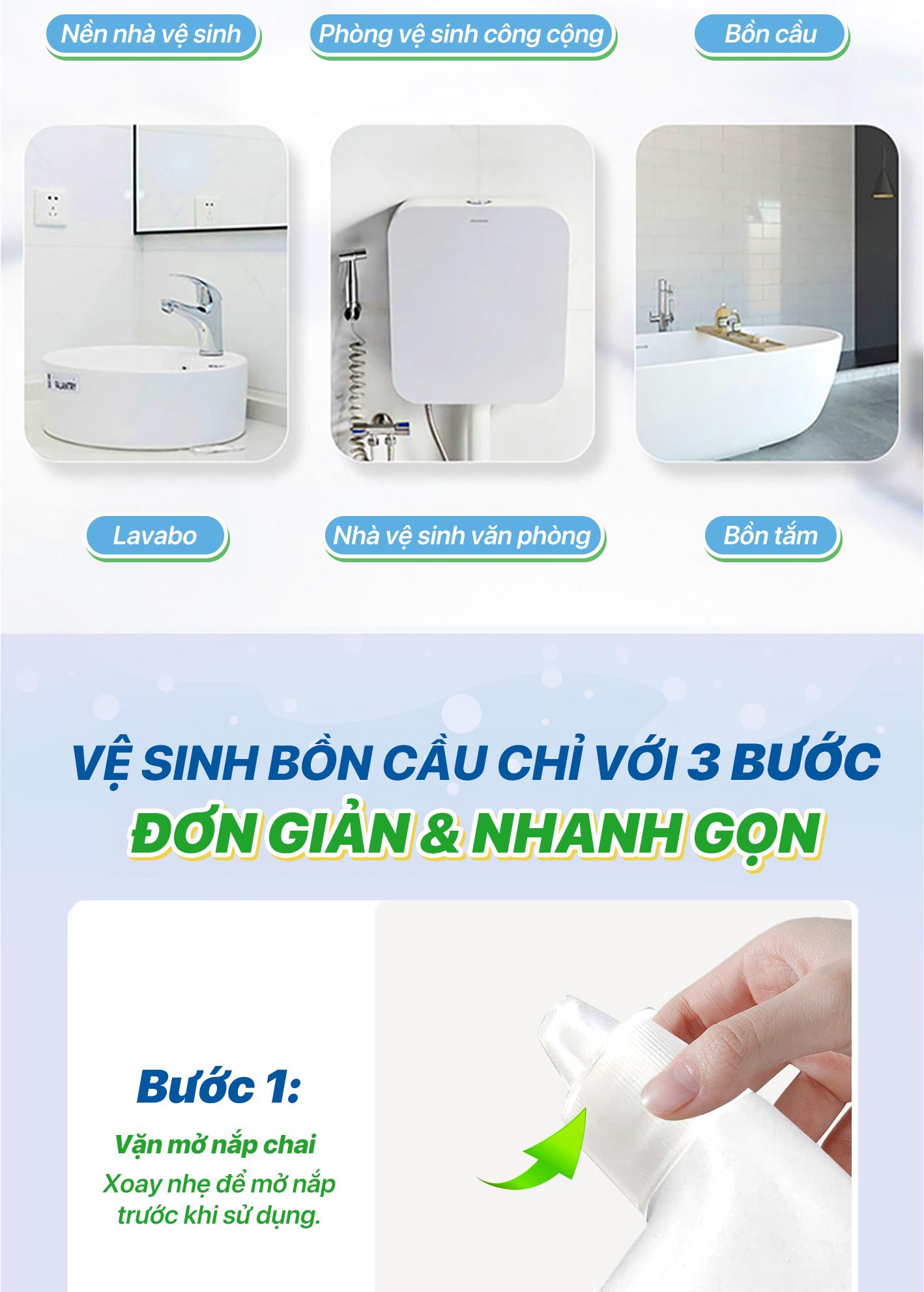 Loại bỏ vết bẩn và cặn bám: Làm sạch cặn bám giúp bồn cầu sạch sẽ nhanh chóng