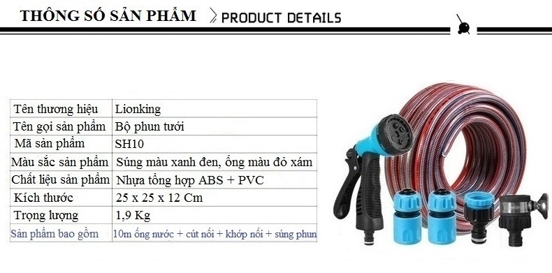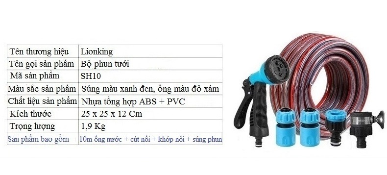 Việc rửa xe, tưới cây, phun xịt vệ sinh nhà cửa của bạn sẽ trở nên cực kỳ đơn giản, nhẹ nhàng. Ống nước Lionking TGS125 có kết cấu 5 lớp, không bị gập, không bị xoắn trong quá trình sử dụng. Vòi xịt nước được làm bằng chất liệu nhựa tổng hợp gồm 5 kiểu phun tưới có độ bền cao, sử dụng dễ dàng, có thể điều chỉnh nhiều kiểu phun nước khác nhau.