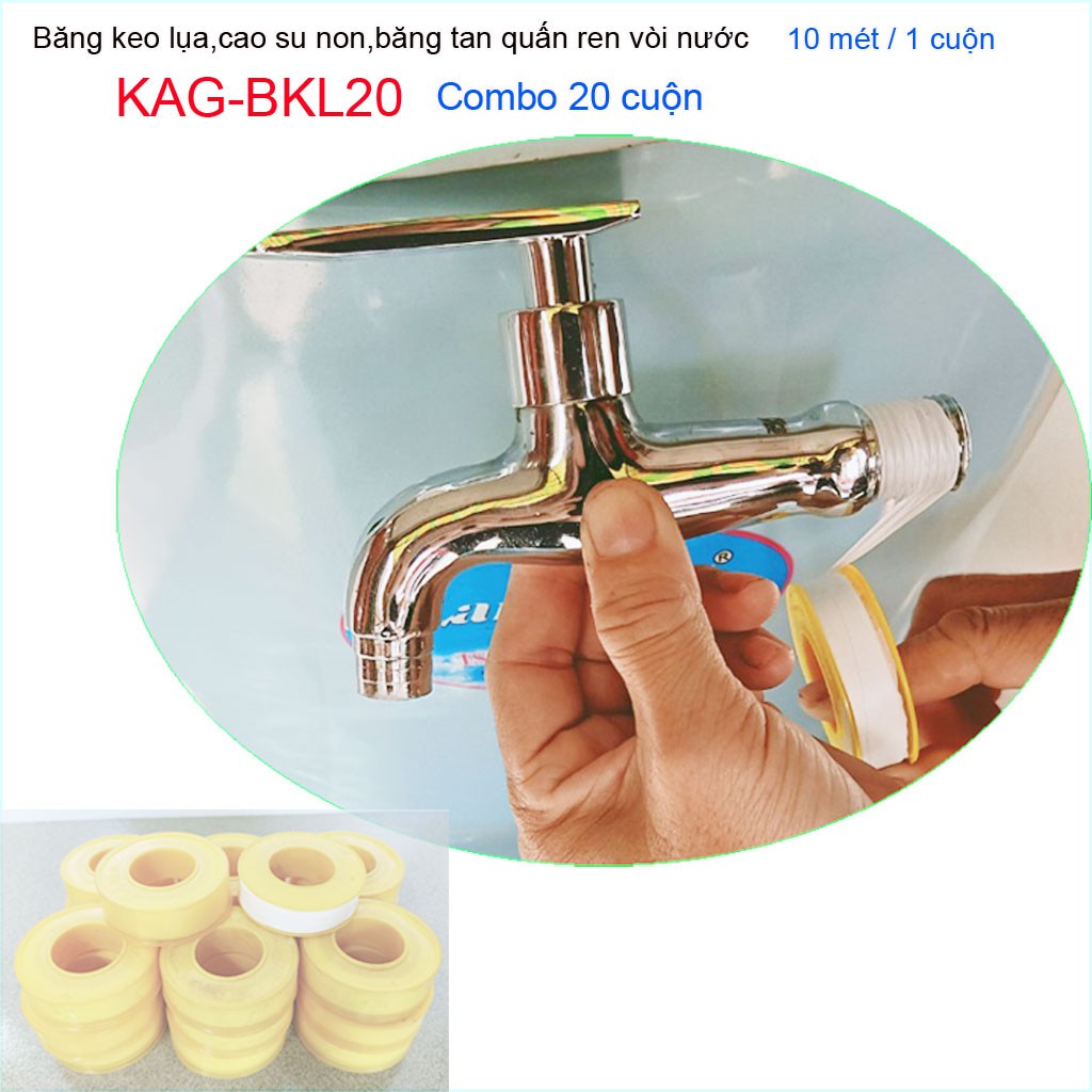 Giới thiệu Combo20 hộp băng keo lụa 10m, combo20 cuộn cao su non 10 meters quấn ống nước KAG-BKL20