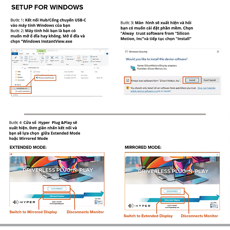 Bạn đã chờ đợi chiếc cổng chuyển USB-C để xuất được 2 màn hình trên Macbook Air / Pro 13 Chip M1 bao lâu rồi? HYPER sẽ giúp bạn giải quyết được tất cả sự phiền toái trên. Cuối tháng 8/2021, HYPER chính thức ứng dụng thành công công nghệ trình chiếu của Silicon Motion’s InstantView (SMI’s) trên chiếc USB-C Hub để tạo ra sự kết nối 2 màn hình HDMI với độ hiện thị và tần số là 4K60hz và DP Alt-Mode 4K30Hz với tên gọi HYPERDRIVE DUAL 4K HDMI USB-C HUB FOR M1 MACBOOK. Ngày hôm nay cũng chính thức bán ra thị trường toàn cầu đầu tháng 11/2021 ngay lập tức nhận được sự hưởng ứng và vô vàn lời “thank you” từ người dùng toàn thế giới bởi nó như giải cơn khát cho người dùng Macbook Air / Pro 13” M1 cần xuất 2 màn hình HDMI.