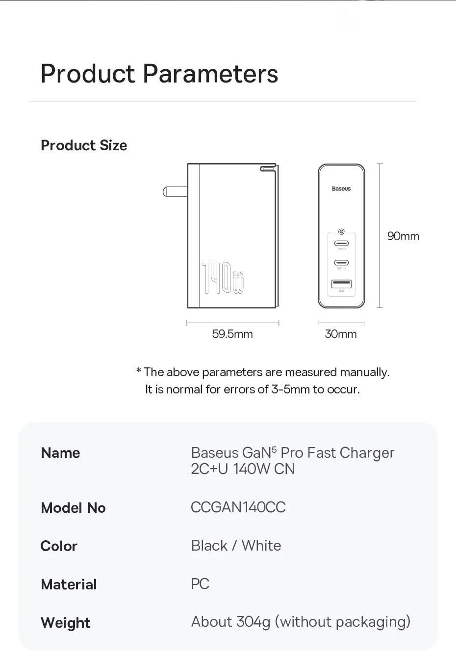 Vẫn là thiết kế khá tương đồng như củ sạc nhanh Baseus 100W GaN5 Pro, nhưng ở củ sạc 140W GaN5 Pro các đường góc cạnh bao quanh củ sạc được gia công tỉ mỉ, từng đường nét vuông vức, chắc chắn và dẹp hơn.