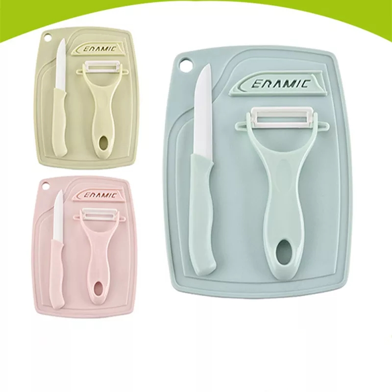 Gồm: Dao + Dụng cụ nạo hoa quả + thớt