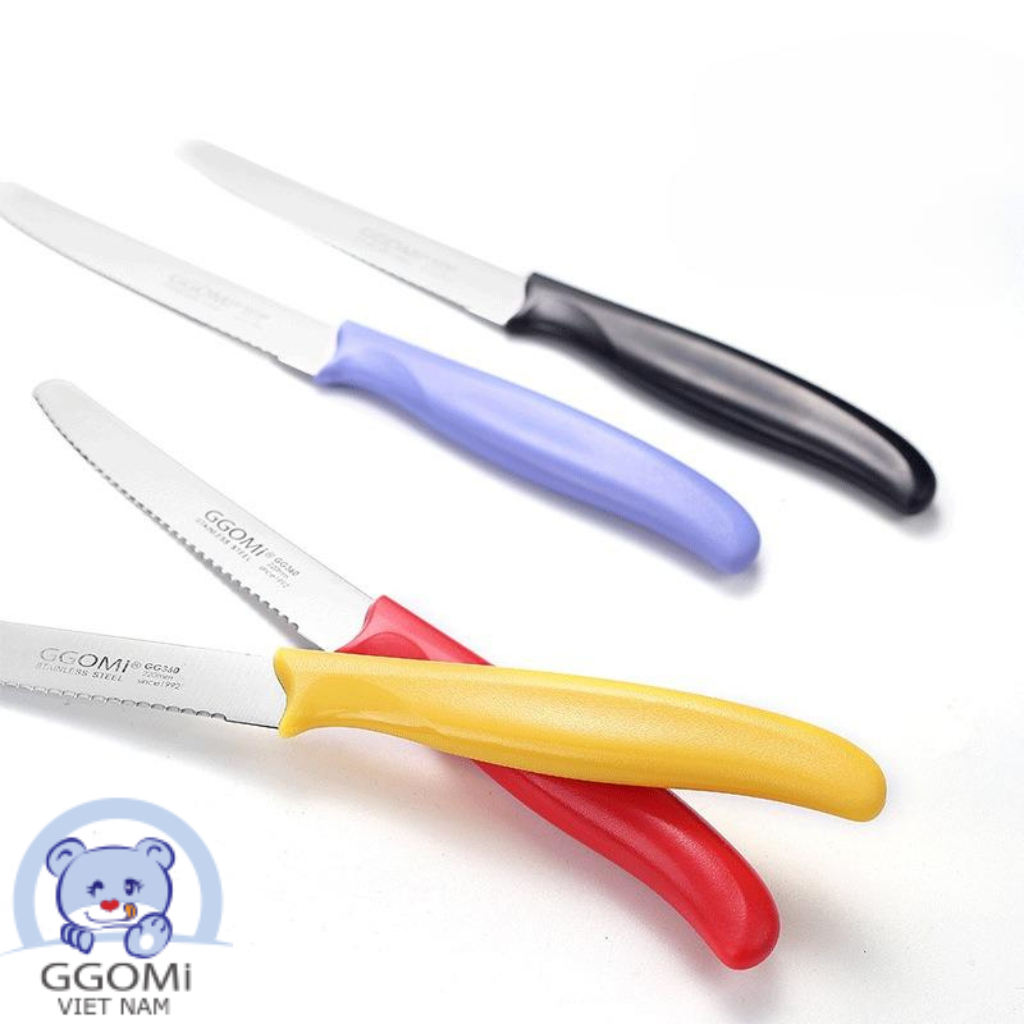 Dao đa năng Ggomi GG360 thiết kế lưỡi dao răng cưa đầu tròn nhỏ gọn, lưỡi dao không dính, thiết kế màu sắc hài hòa, thích hợp với việc cắt gọt hoa quả, cắt bánh mỳ, phết bơ trong nhà bếp, trong các buổi dã ngoại, du lịch ngoài trời tiện dụng và dễ lau chùi.