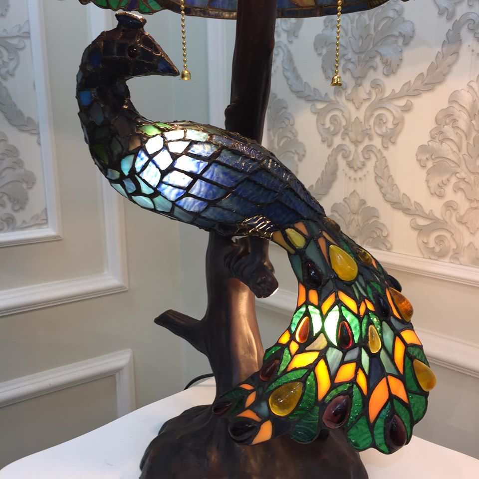 Đèn bàn tiffany họa tiết hình tượng khổng tước mang phong cách tân cổ điển