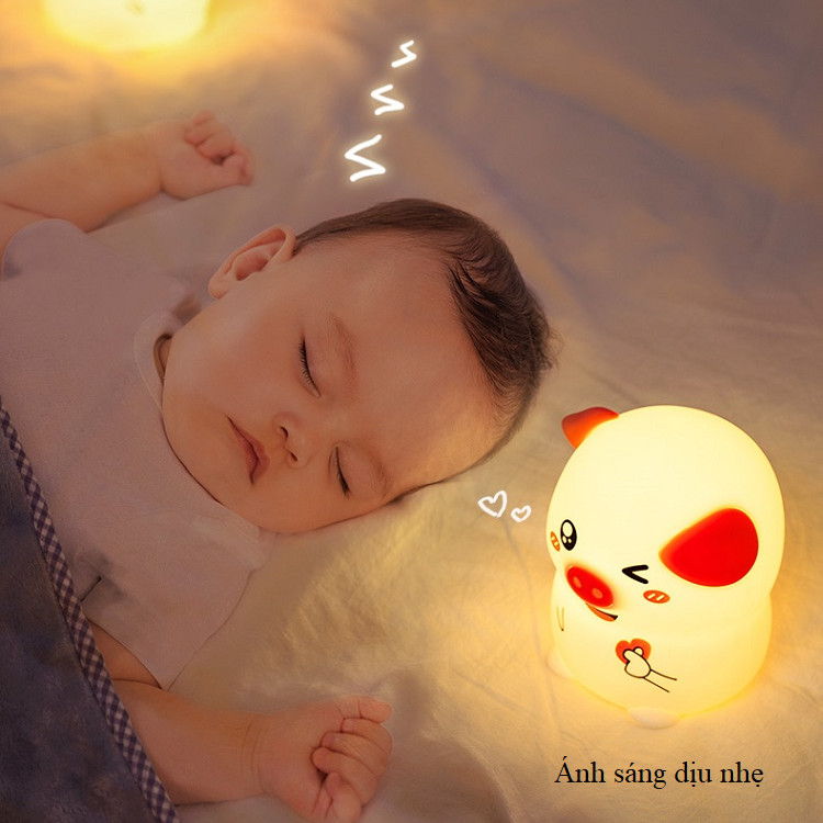 Đèn ngủ silicon cảm ứng chạm đổi màu hình PIG đáng iu tích hợp ĐKTX có kiểu dáng dễ thương, được sử dụng làm đèn ngủ, đèn trang trí bởi tính năng tiết kiệm điện của nó. Chiếc đèn ngủ cảm ứng này phát ra ánh sáng dịu nhẹ, tạo cảm giác thoải mái. Với kích thước chiều cao khoảng 12cm có thể nói là khá nhỏ gọn, bạn có thể đặt ở mọi vị trí khác nhau trong căn phòng của bạn.