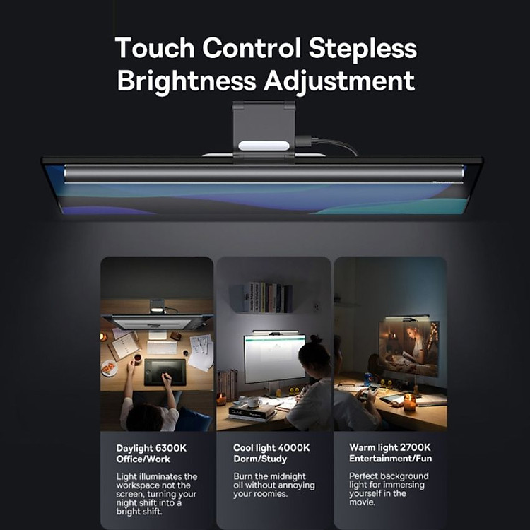Tính năng Đèn Treo Màn Hình Máy Tính Chống Chói Bảo Vệ Mắt Baseus i-wok2 Series Screen Hanging Light (I-wok2 Youth New Edition, Ra>95, i-wok2 USB Asymmetric, Full Spectrum Color, Touch Control)- DGIW