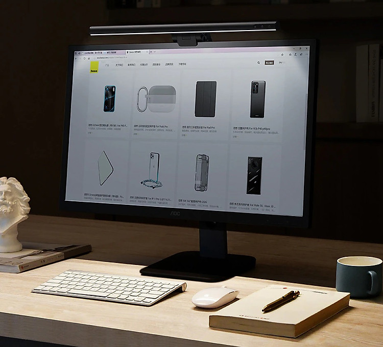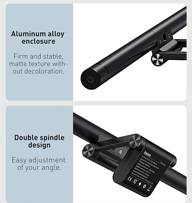 - Với thiết kế dạng treo thông minh và tiện dụng, Đèn Baseus i-Work Series có thể được treo gọn lên trên màn hình và khả năng điều chỉnh góc chiếu sáng đễ dàng. Thiết kế này vừa giúp tăng hiệu quả chiếu sáng vừa tiết kiệm không gian bàn làm việc.