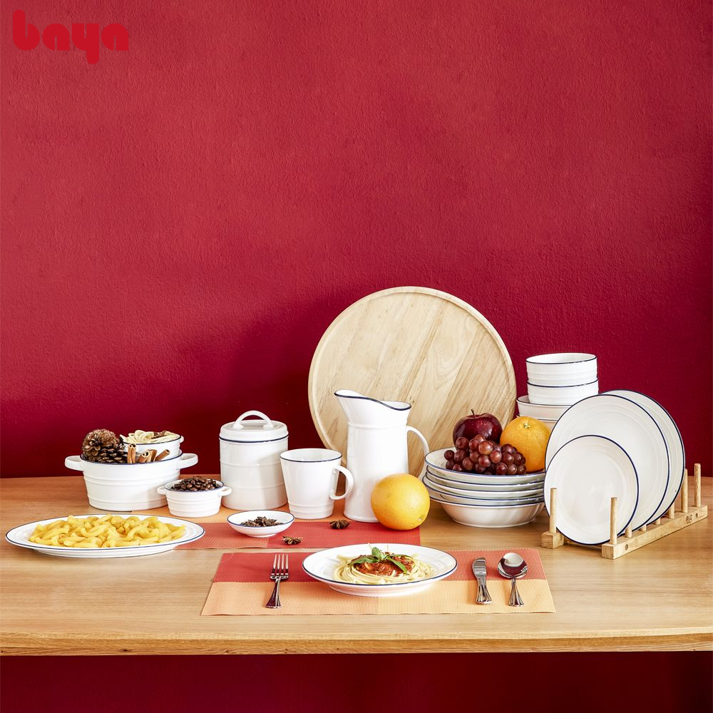 Đĩa Sứ Trắng Sâu Lòng BAYA REGATTA Chất Liệu Sứ Trắng Tráng Men Viền Xanh Bóng Cao Cấp Phong Cách Hiện Đại 1062311
