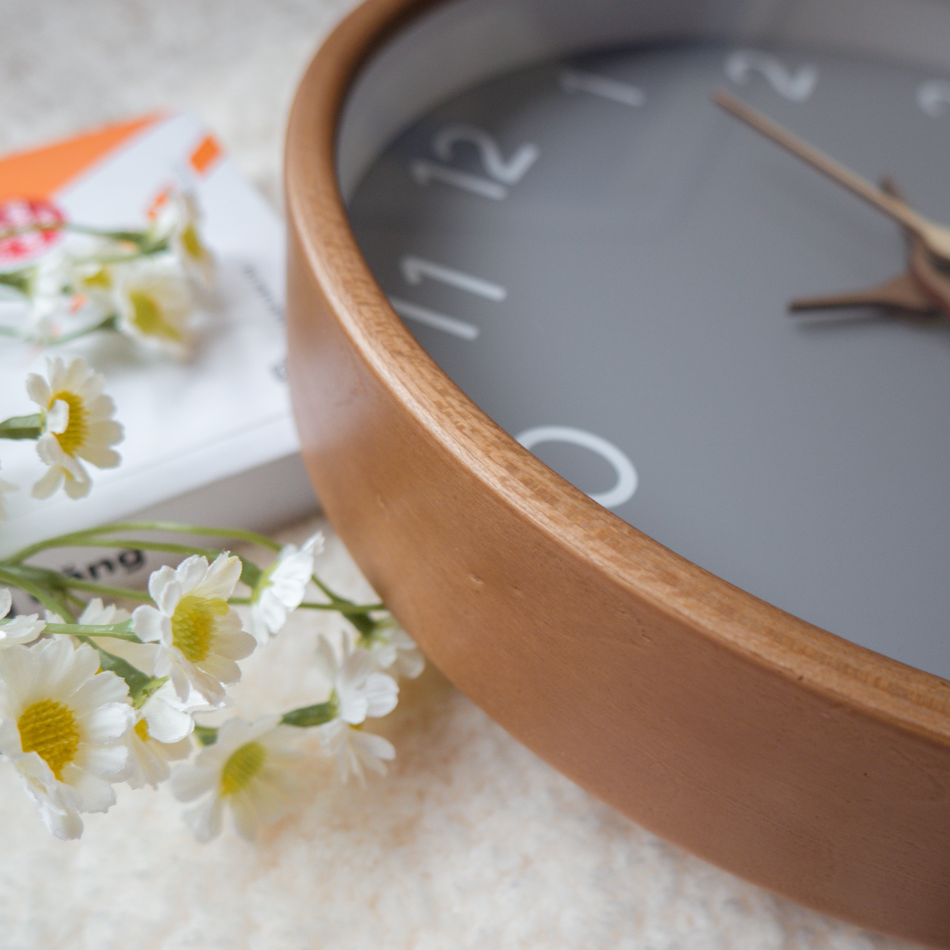 Đồng hồ treo tường tròn có thiết kế tối giản mang nét cổ điển kết hợp với gam màu nâu trầm tinh tế phù hợp với mọi người dùng.