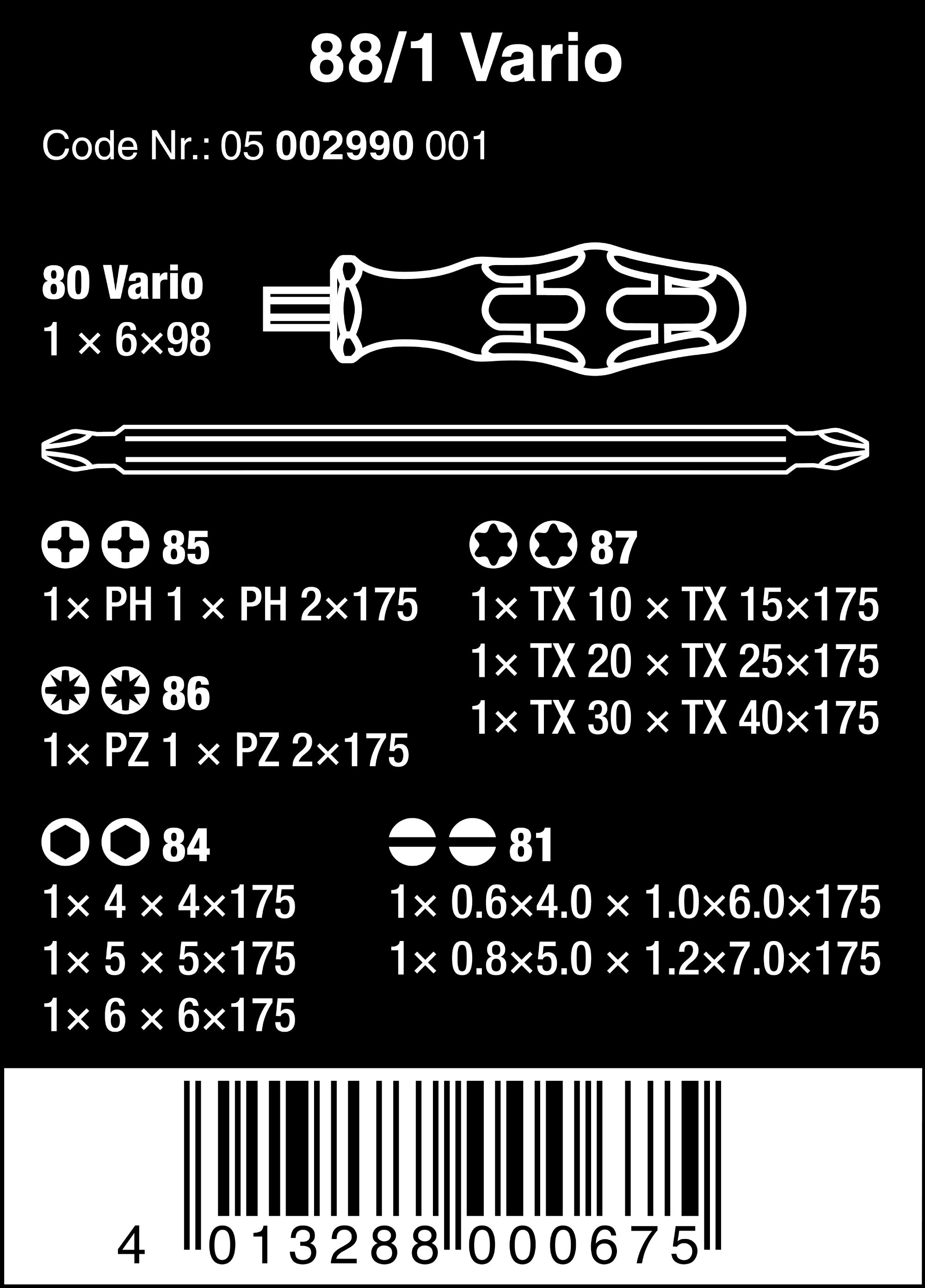 - Bộ Vario gồm 11 cái, 10 vít hai đầu và cán vít.
