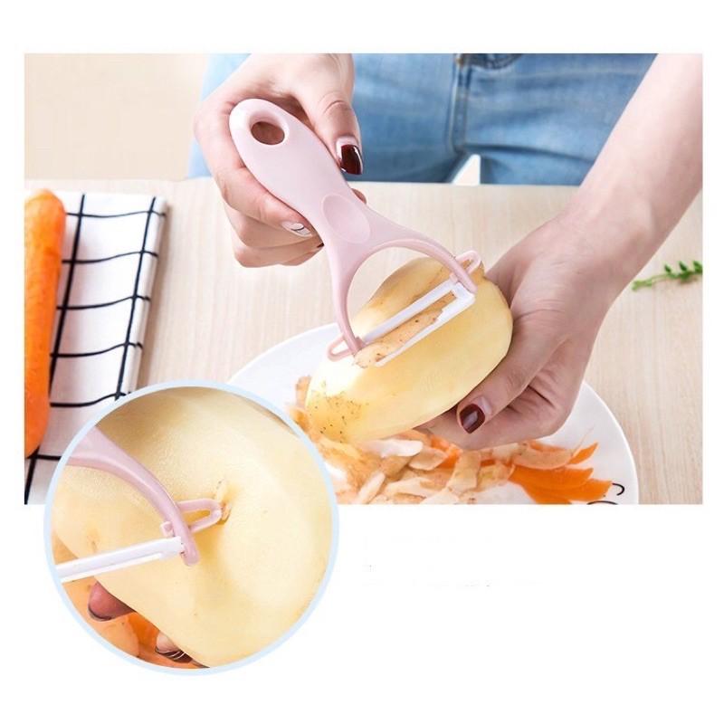 - Dụng cụ gọt rau củ lưỡi sứ sắc bén giúp gọt vỏ mỏng, nhanh chóng, thích hợp gọt nhiều loại vỏ trái cây.