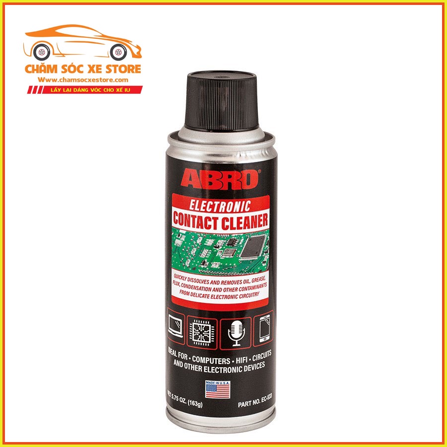 - Vệ sinh mạch điện Abro Electronic Contact Cleaner làm sạch mạch điện bị nhiễm bẩn, dầu mỡ, khử ẩm trên bảng mạch điện tử, đầu rắc nối điện, công tắc. Thường dùng để vệ sinh các bộ phận, linh kiện điện trước khi lắp đặt chúng.