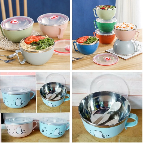 Giới thiệu [FREESHIP] CỐC INOX ĂN MÌ CÓ NẮP 900ml - TÔ KÈM MUỖNG