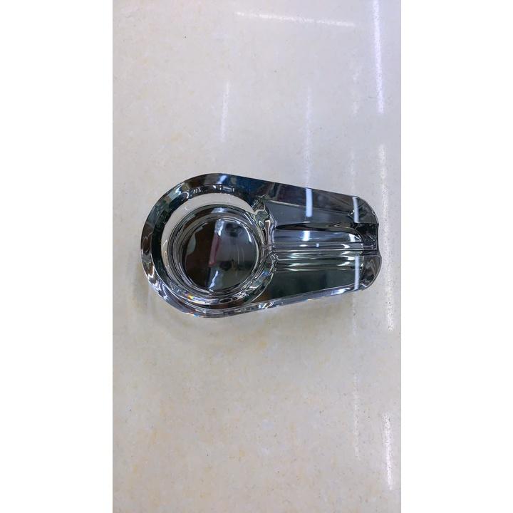 Hình dạng giọt nước và có 1 khe rãnh để điếu, được làm từ chất liệu THỦY TINH nguyên khối giúp dễ dàng vệ sinh mà không bị bám ố vàng