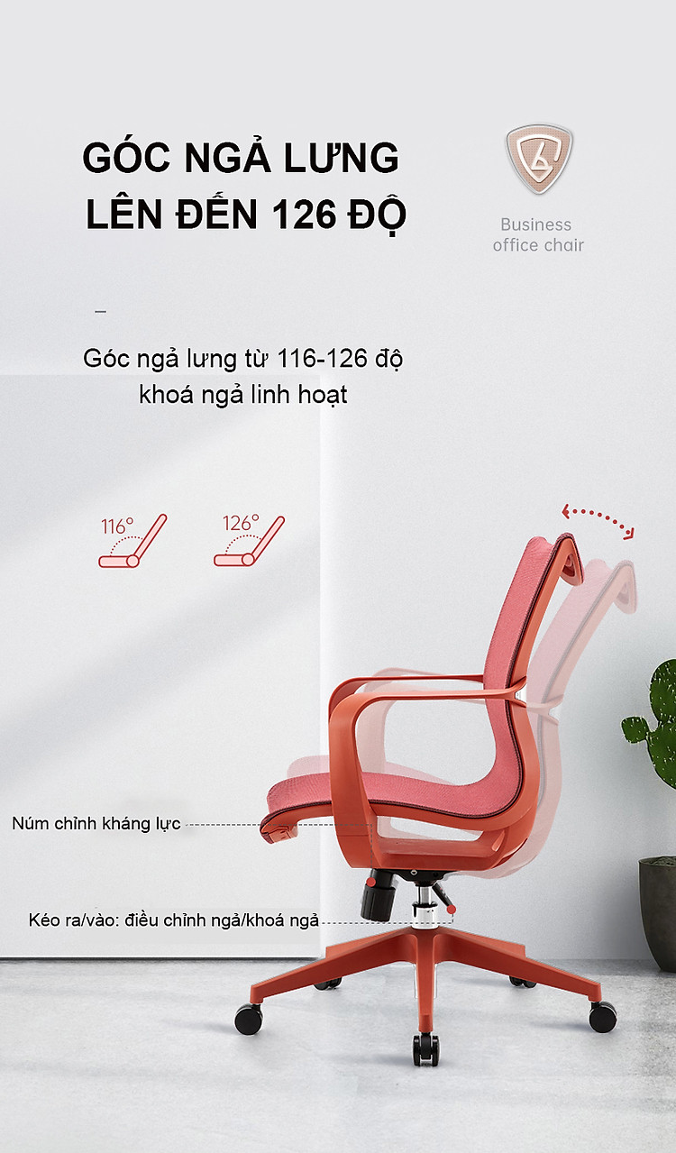 Lưng ghế có thể được khóa nhưng có một độ đàn hồi nhất định đem lại cảm giác thoải mái khi tựa, cùng với khả năng ngả lưng lên đến 126 độ nếu bạn chọn chế độ không khóa lưng.