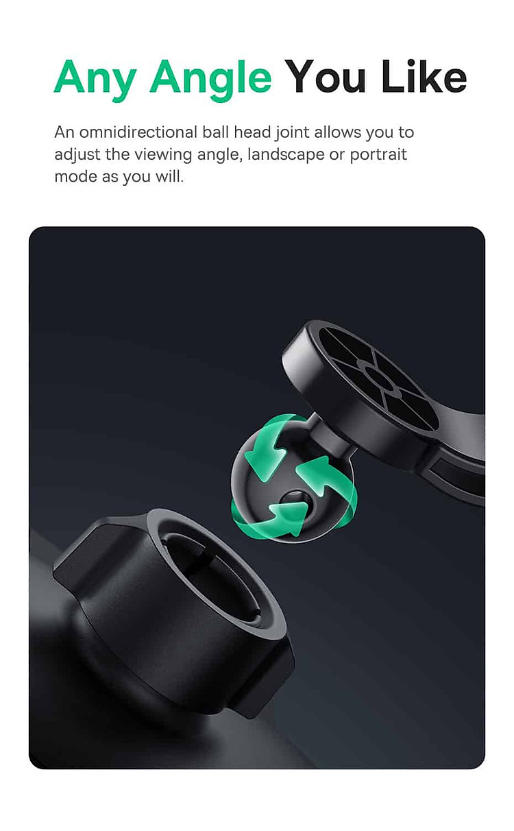 Giá đỡ có khả năng xoay 360 độ và điều chỉnh góc độ linh hoạt, giúp bạn dễ dàng điều chỉnh để có tư thế hiển thị tốt nhất.