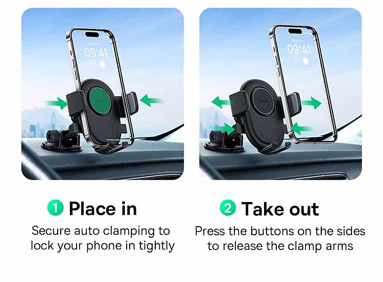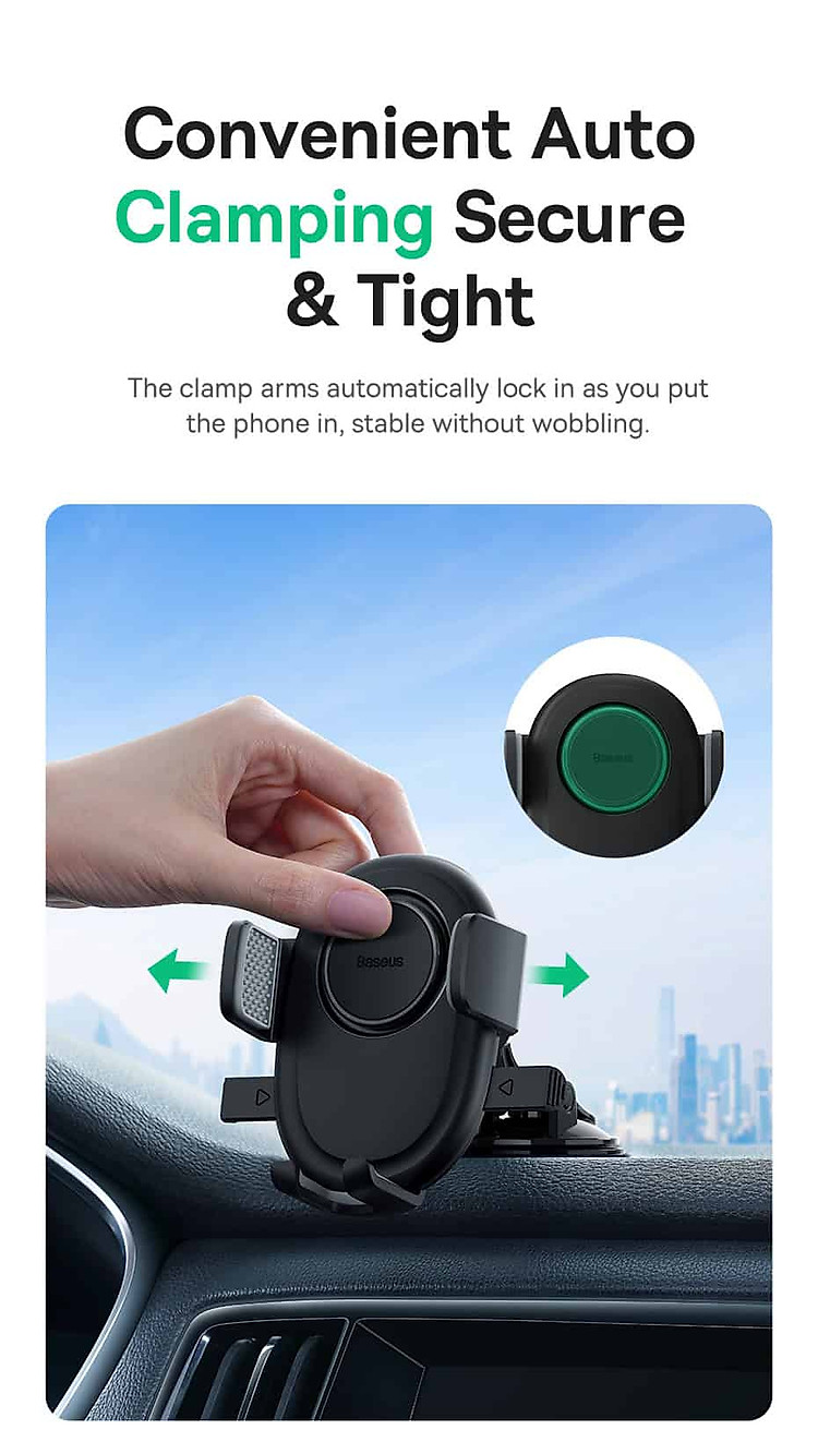 Baseus UltraControl Lite Series sử dụng công nghệ Auto Clamping tiên tiến, giúp giữ điện thoại của bạn một cách an toàn và chắc chắn. Chỉ cần đặt điện thoại lên giá đỡ, cảm biến tự động kích hoạt và ôm sát điện thoại mà không cần sự can thiệp của bạn.