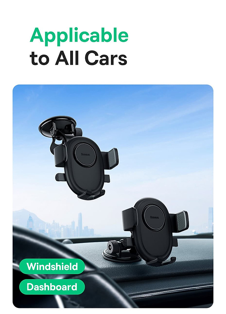 Baseus UltraControl Lite Series được thiết kế để gắn chặt trên kính và taplo ô tô, tạo ra sự ổn định và chắc chắn mà không gây ảnh hưởng đến tầm nhìn khi lái xe.