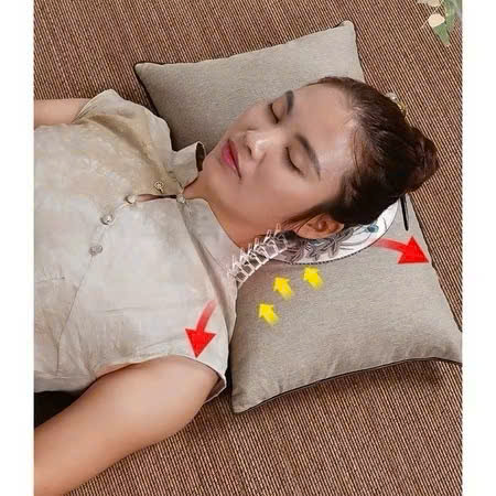 Bước 3: Đặt gối vào vùng cổ, vai gáy, lưng hoặc bụng để thư giãn, giảm đau nhức.