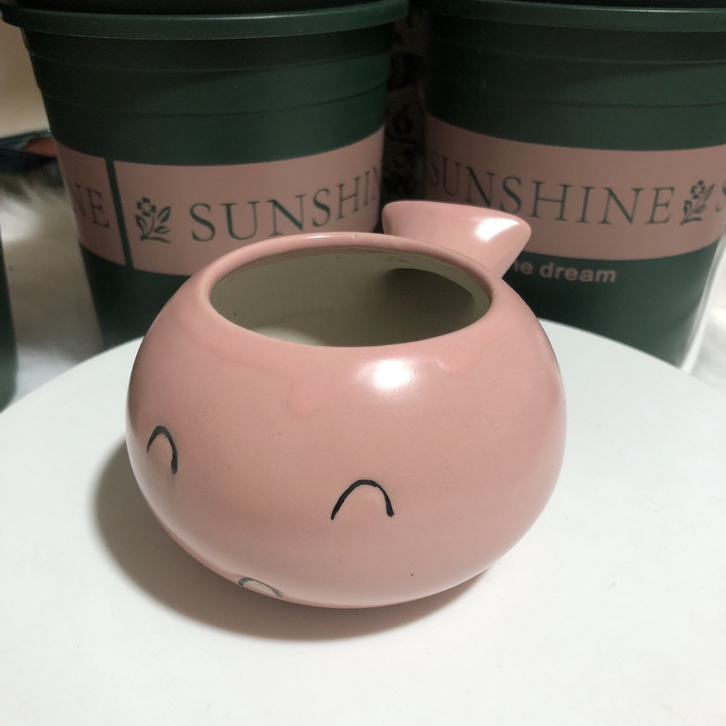 - Chậu men, in hình xinh xắn. Mang lại cảm giác sinh động và sang trọng.