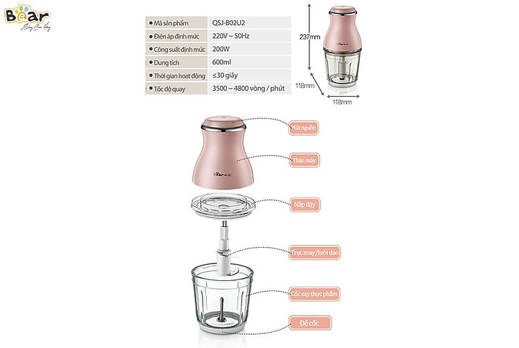 ![[Hàng Chính Hãng]Máy xay thực phẩm Bear SML QSJ-B02U2 màu hồng công suất 220w, dung tích 60ml, bằng nhựa ABS + cối thủy tinh an toàn, tốc độ 3500-4800vòng/phút, Cốc xay có nắp chống tràn, kèm dây móc treo tiện lợi.](https://salt.tikicdn.com/ts/product/8a/58/41/af9b08db76d3daa6bdac966b160b2718.jpg)