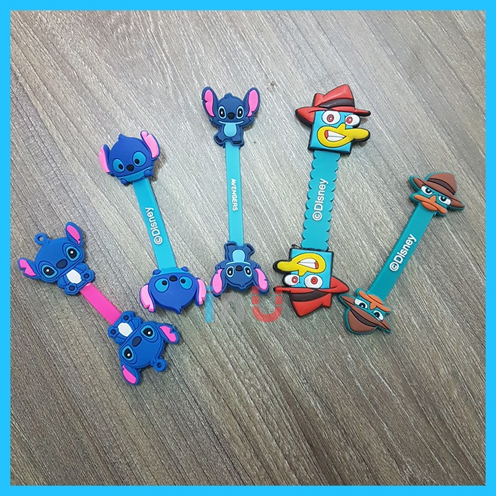 HCM - Dây hoạt hình Doremon, Stitch, vịt Pery, Donald, Daisy, Totoro, sóc nâu kẹp gọn dây tai nghe, điện thoại