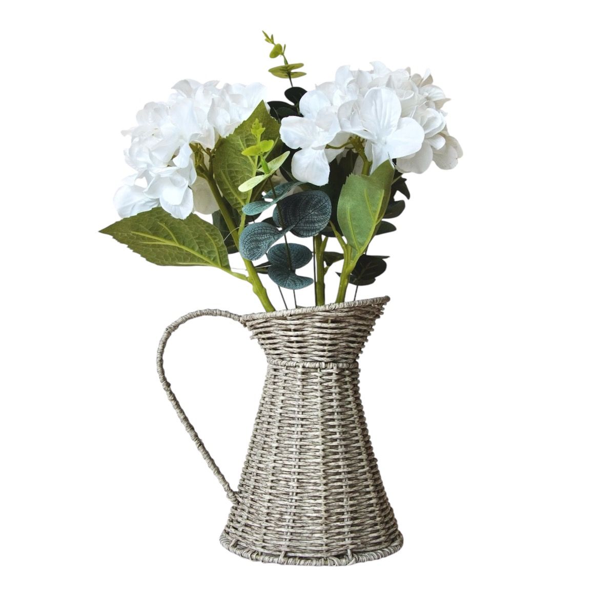 - Chất liệu sản phẩm: Hoa nhựa + Giỏ mây