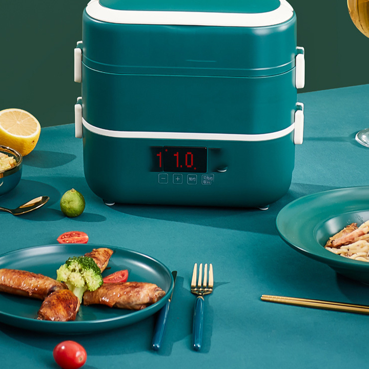 Hộp cơm hâm nóng có HẸN GIỜ 2 tầng PESKOE - hộp đựng cơm 4 bát sứ an toàn sức khỏe