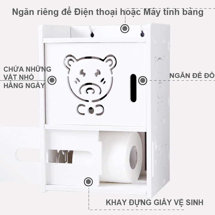 Sản phẩm được thiết kế ngăn nước vào bên trong nhằm bảo vệ cuộn giấy luôn khô thoáng, thích hợp đặt trong phòng tắm, đồng thời có thể sử dụng trong nhà bếp, phòng khách…