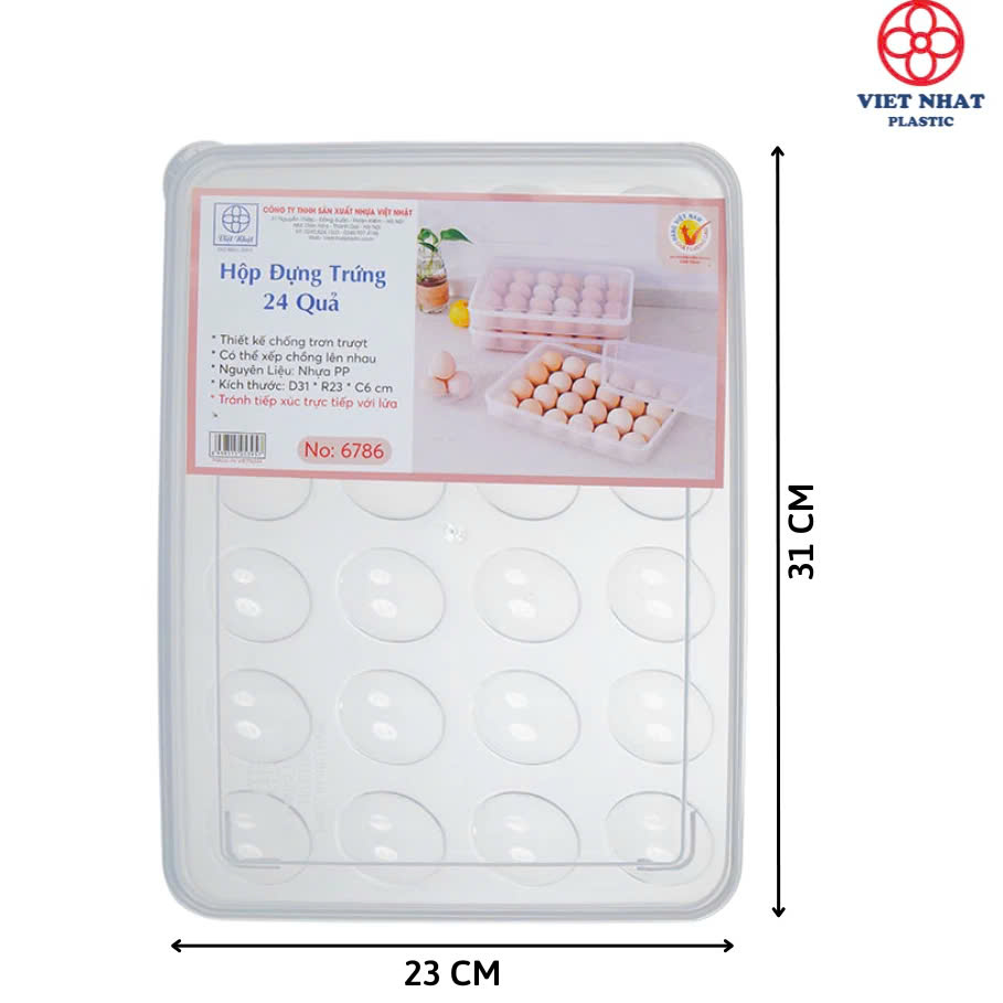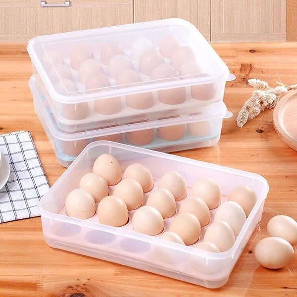 Hộp đựng trứng giúp bạn chứa được 24 quả trứng, việc để trứng vào hộp giúp bạn bảo quản trứng được lâu hơn vì với nhiệt độ phía trong tủ lạnh, trứng luôn mát và lâu hỏng hơn là bạn để ở cánh cửa tủ lạnh. Hộp trứng có các ô để trứng riêng biệt giúp cố định trứng không bị xô lệch và dễ lấy ra khi chế biến. Nắp đậy kín với quai xách đảm bảo vệ sinh, tiện lợi khi di chuyển và giúp bạn bảo quản trứng tươi lâu hơn.