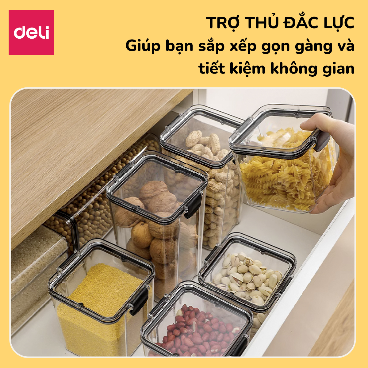Hộp nhựa trong suốt đựng thực phẩm ngũ cốc đồ khô nhựa an toàn cho thực phẩm sắp xếp nhà bếp gọn gàng