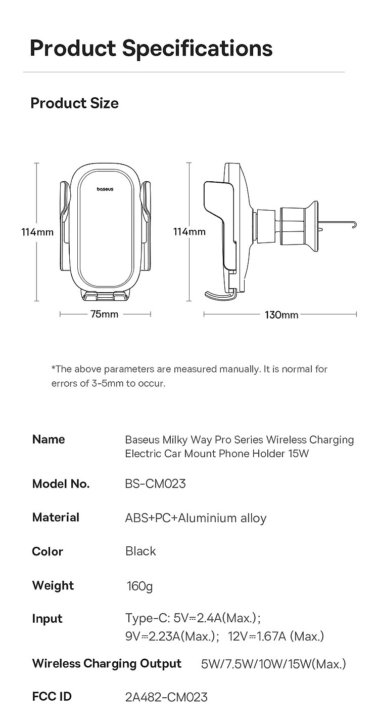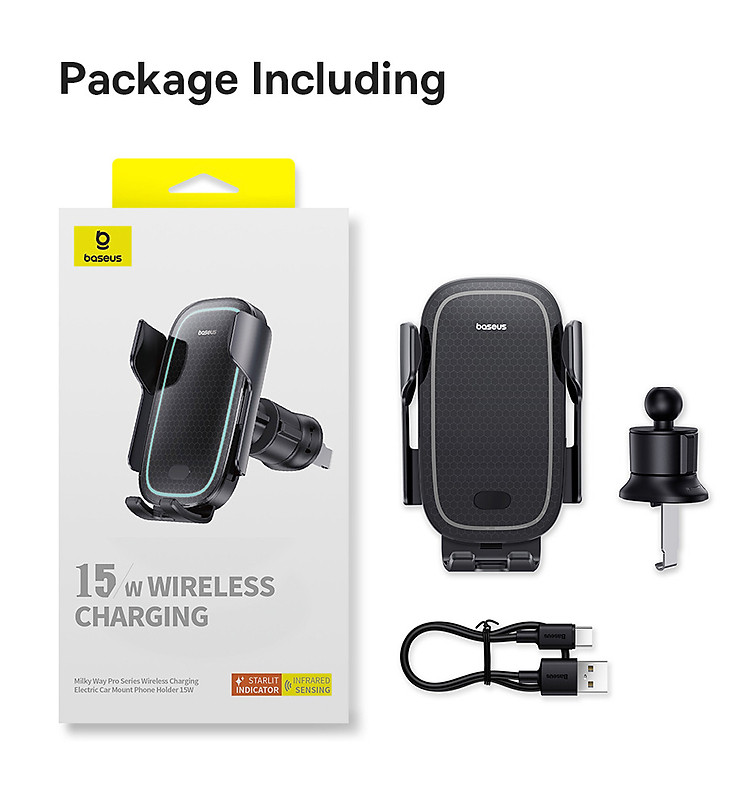 | Tên | Đế Giữ Điện Thoại Tích Hợp Sạc Không Dây Baseus Milky Way Pro Series Wireless Charging Electric Car Mount Phone Holder 15W |
