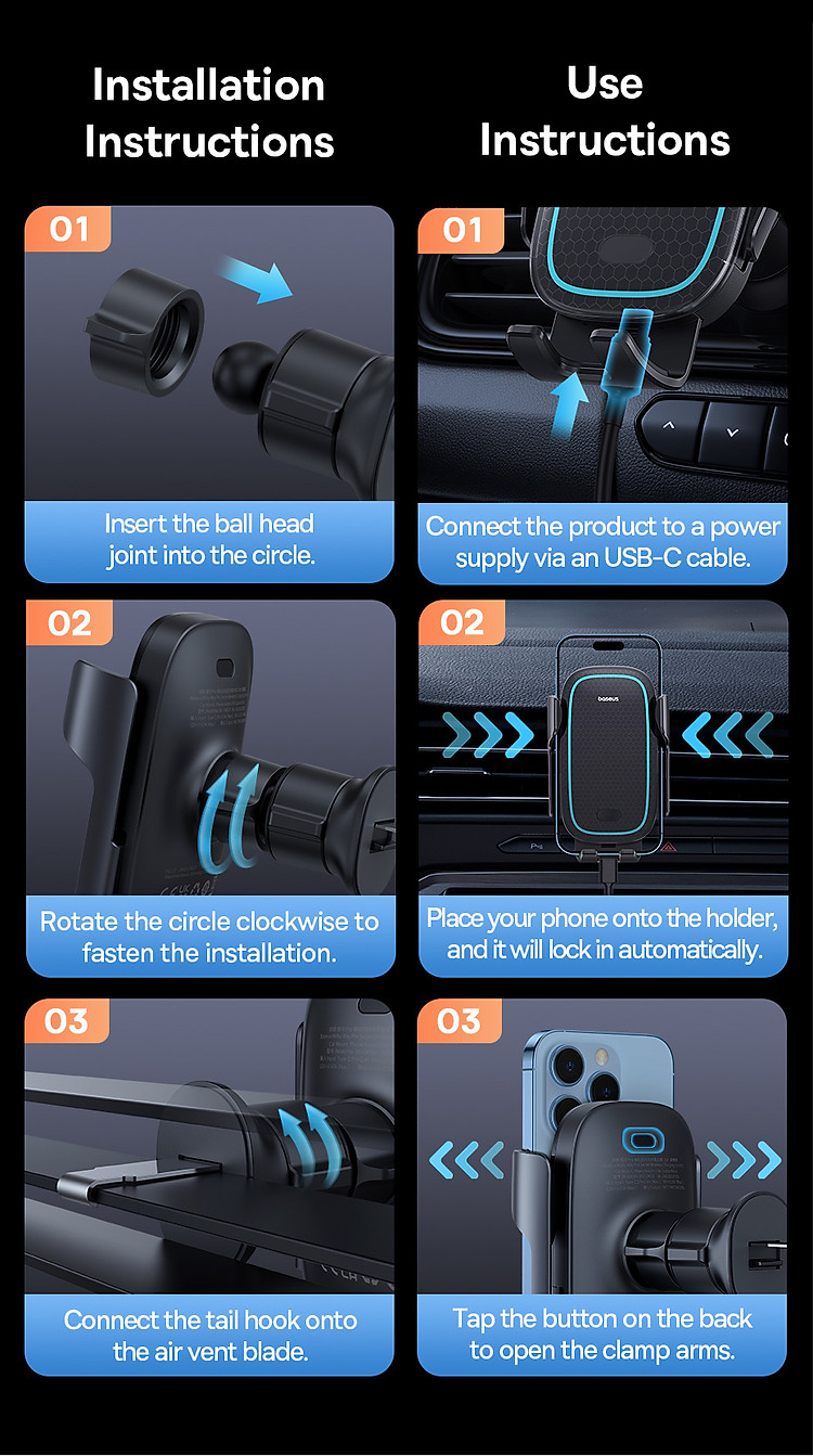Đế giữ điện thoại cũng có các tính năng thông minh bổ sung như cảm biến tự động, cho phép nắm bắt điện thoại và mở rộng tự động để đảm bảo việc gắn và tháo điện thoại dễ dàng và nhanh chóng. Nó cũng có khả năng điều chỉnh góc đặt để phù hợp với góc nhìn tốt nhất cho bạn.