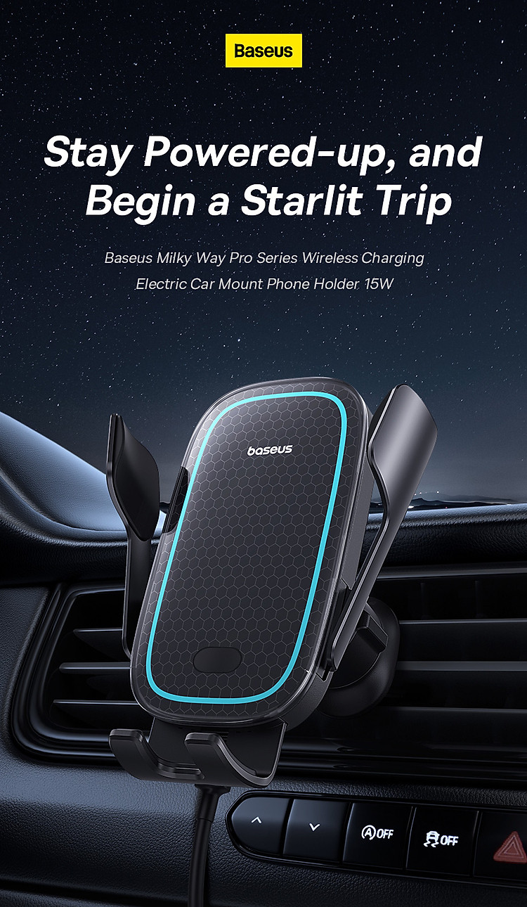Đế Giữ Điện Thoại Tích Hợp Sạc Không Dây Baseus Milky Way Pro Series Wireless Charging Electric Car Mount Phone Holder 15W là một giải pháp tiện ích cho việc sử dụng điện thoại trong xe hơi. Nó kết hợp tính năng giữ điện thoại và sạc không dây, mang lại sự tiện lợi và an toàn trong quá trình lái xe.