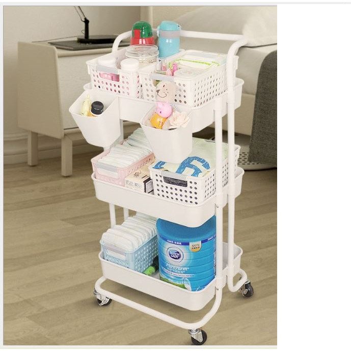 Kệ Sắt Đa Năng 3 tầng, có Bánh Xe và Tay Đẩy - Màu Trắng
