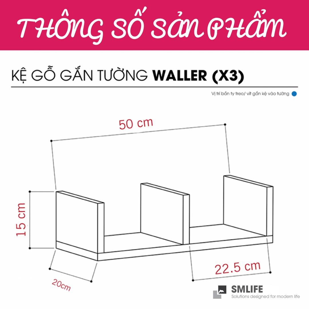 Mang đậm phong cách nội thất đơn giản, kệ gỗ trang trí gắn tường Waller là một sự bổ sung hoàn hảo cho căn hộ hay văn phòng của bạn. Kệ gỗ Waller được thiết kế theo phong cách đơn giản, hiện đại giúp bạn thoải mái trang trí sách hay các vật dụng trang trí an toàn. Sử dụng vật liệu ván ép công nghiệp MDF chống ẩm phủ Melamine cao cấp giúp kệ gỗ trang trí SMLIFE có độ bền cao, chống trầy và chống ẩm rất tốt. Bạn có thể tự lắp đặt sản phẩm dễ dàng với các phụ kiện và hướng dẫn đi kèm.