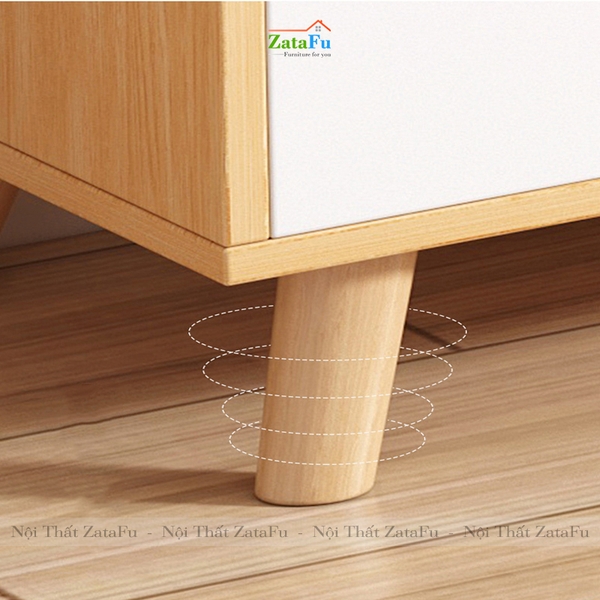 - Phần chân gỗ được thiết kế thấp để giữ được độ thăng bằng cho tủ, ngoài ra thay vì chỉ lắp 4 chân như bình thường, Nội thất ZataFu tăng lên 6 chân để tăng thêm độ chắc chắn cho sản phẩm, đảm bảo tủ có thể chứa được nhiều đồ đạc và chịu được trọng lượng lớn tác dụng lên tủ.