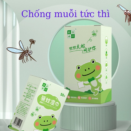 Khăn lau chống muỗi - hộp 50 miếng- nhỏ gọn, thuận tiện, dễ mang theo khi đi du lịch, dã ngoại.