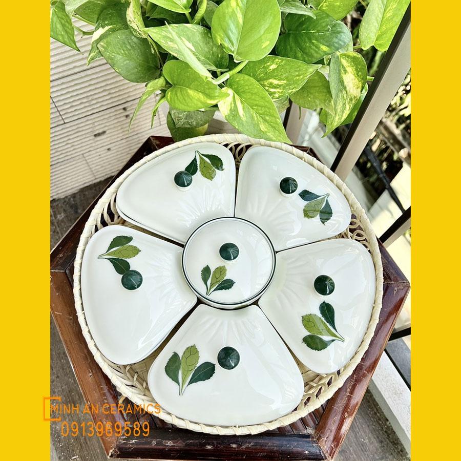 Bộ gồm 1 khay + 5 hộp dáng cánh hoa, 1 hộp tròn,
