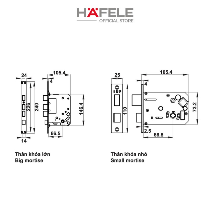 Kích thước thân khóa trong: 78.5 x 310.5 x 35mm