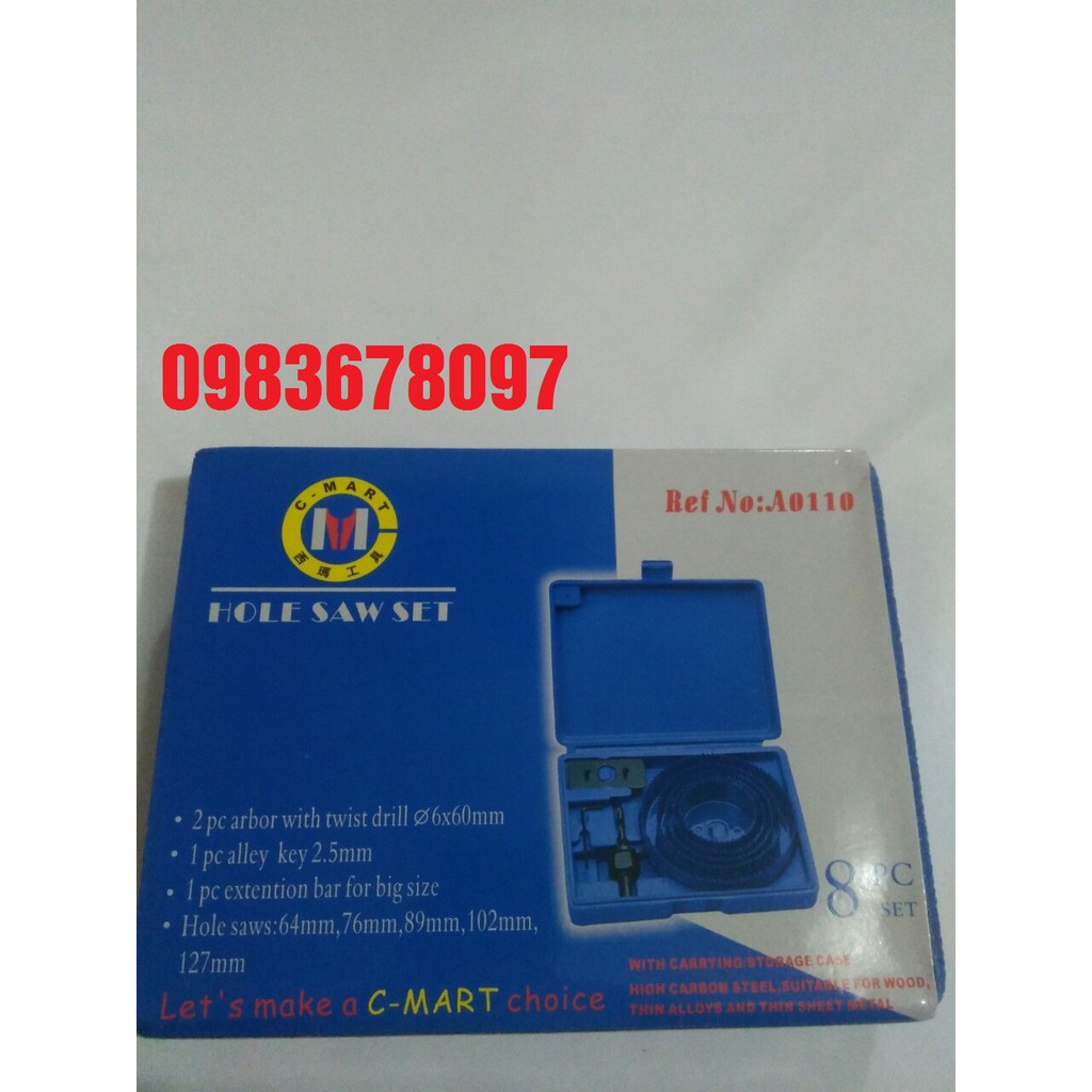 Bộ khoét lỗ gỗ, thạch cao 64 - 127mm 8 chi tiết C-MART A0110