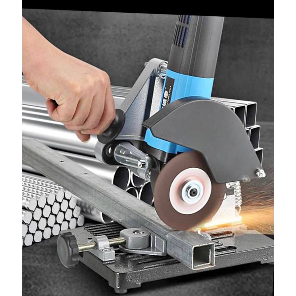 Thông số kỹ thuật:-Được đúc bằng hợp Kim chịu lực-Có lò xo đẩy mạnh mẽ-Có thiết bị kẹp điều chỉnh-Hỗ trợ dùng cho tất cả các loại máy mài, máy cắt góc cầm tay trên thị trường-Có bảo vệ chống tia lửa-Kích thước đế máy:200 × 240 mm-Dùng được cho các loại máy cắt góc có kích thước đá dưới 125mm