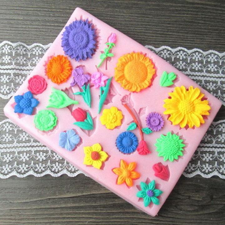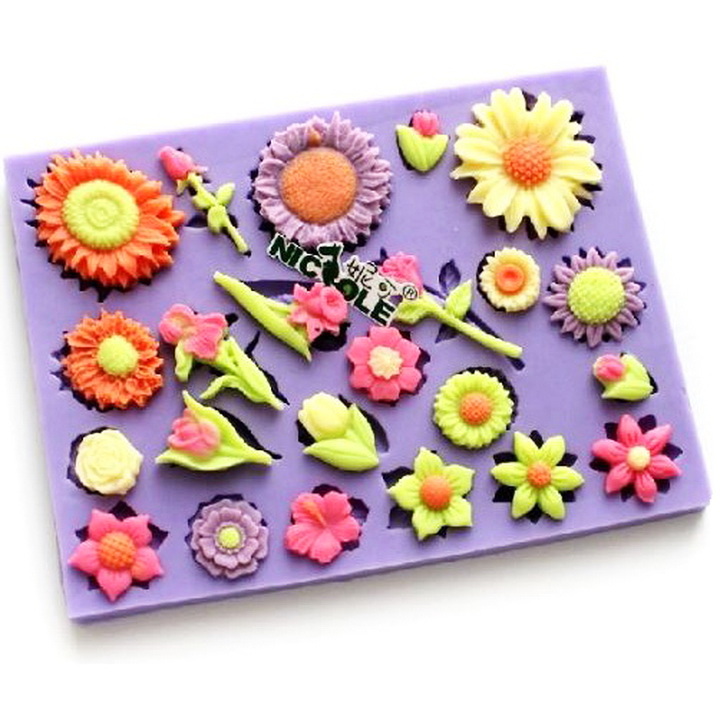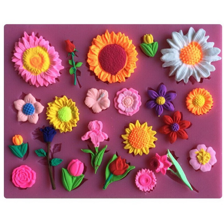 Khuôn silicon làm rau câu các loại hoa dại, hoa hướng dương - Mã số 1672