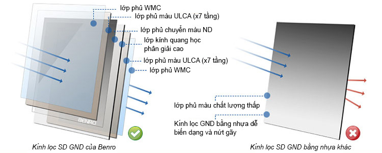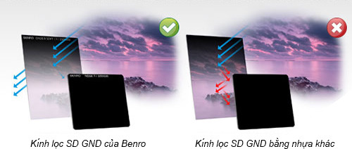 Kính lọc giảm sáng GND với bế mặt phản quang thấp, tránh hiện tượng chói sáng trên bề mặt ống kính. Đối với các ống kính nhiều thấu kính, kính lọc giúp giảm thiểu tối đa khúc xạ ánh sáng, từ đó tránh hiện tượng lóe sáng khi chụp ảnh.