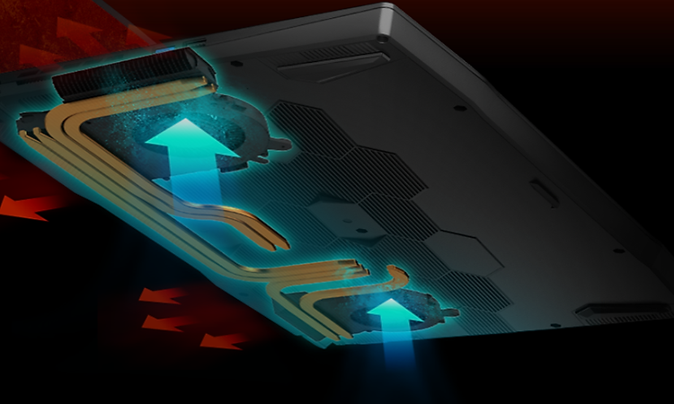 Giải nhiệt tối đa cho CPU và GPU của GF66 11UC - 641VN với công nghệ Cooler Boost có 2 quạt và 6 ống dẫn nhiệt đảm bảo hiệu suất hoạt động tối ưu cho chiếc máy của bạn.