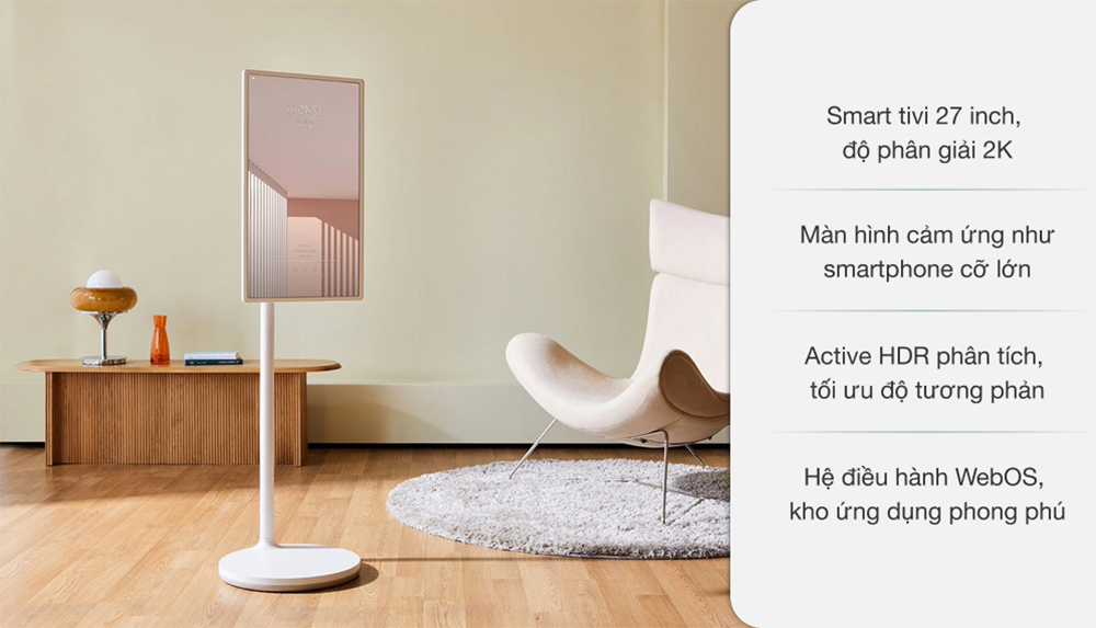 LG StanbyMe 2K 27 inch 27ART10AKPL gây ấn tượng với kiểu dáng năng động, màn hình cảm ứng cho bạn điều khiển dễ dàng với 1 cú chạm nhẹ, đường nét tinh tế, cho vẻ ngoài cao cấp, thời thượng.