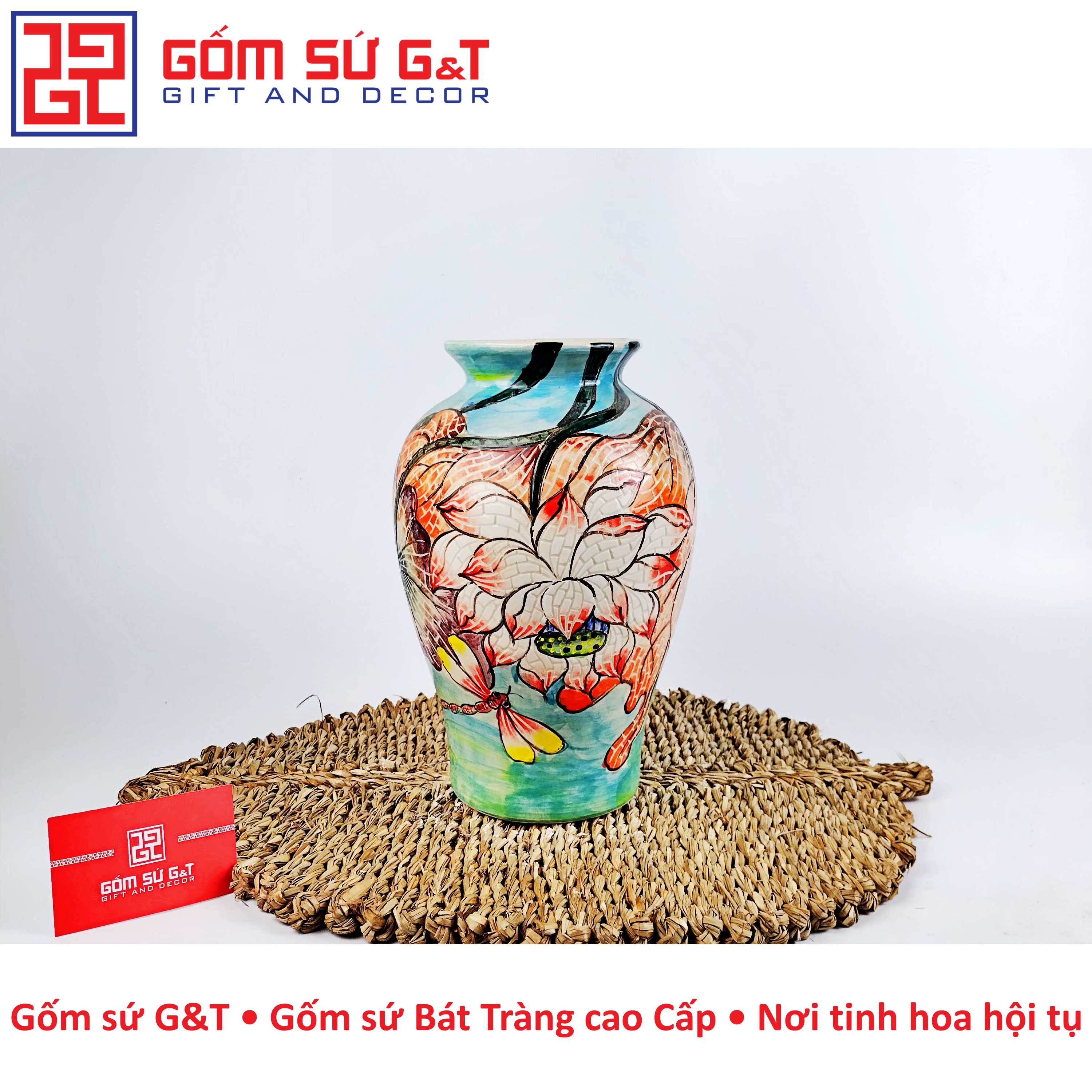 Lọ hoa chum sen chuồn là sự kết hợp hoàn hảo giữa nghệ thuật hiện đại và truyền thống. Với nguồn cảm hứng từ những nét đẹp văn hóa và nghệ thuật dân gian, mỗi chi tiết được khắc họa kỹ lưỡng để tạo ra các mẫu hoa độc đáo. Sản phẩm này không chỉ mang trong mình vẻ đẹp mỹ thuật mà còn là một dấu ấn của sự kế thừa và phát triển văn hóa truyền thống.